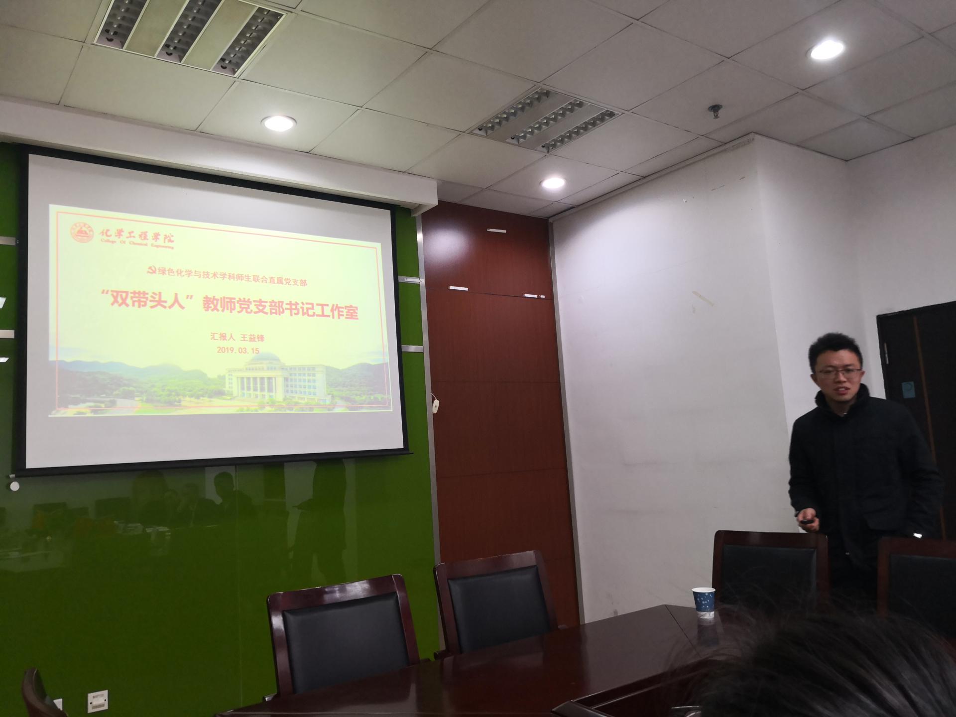 浙江工业大学化学工程公司绿色化学与技术师生联合党支部书记王益锋就“双带头人”教师党支部书记工作室建设情况进行了介绍。