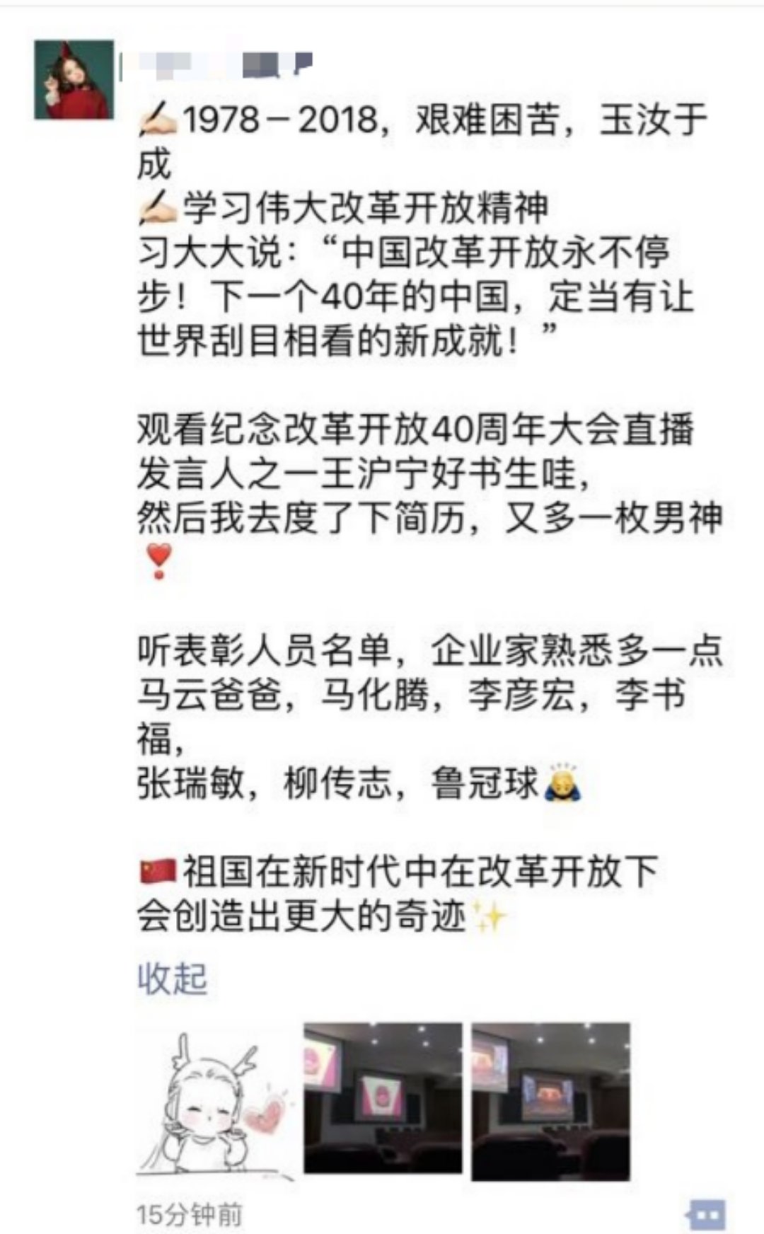17会计潘凯玲激动地说:“改革开放40年来,从开启新时期到跨入新世纪,从站上新起点到进入新时代,40年风雨同舟,40年披荆斩棘,40年砥砺奋进,我们党引领人民绘就了一幅波澜壮阔、气势恢宏的历史画卷,谱写了一曲感天动地、气壮山河的奋斗赞歌。我们不断见证着祖国的变化。感谢那些在各个领域的引领者,我生为中国人感到无比的骄傲自豪!”