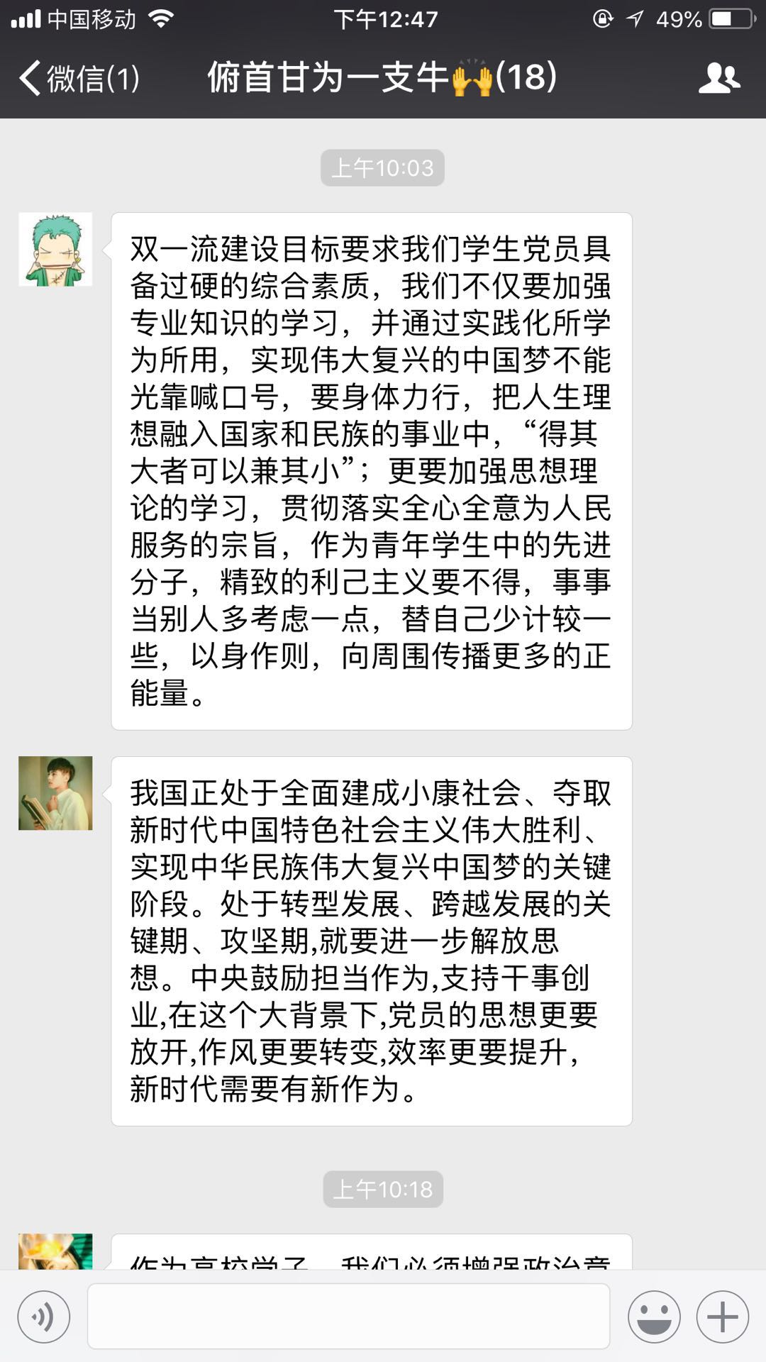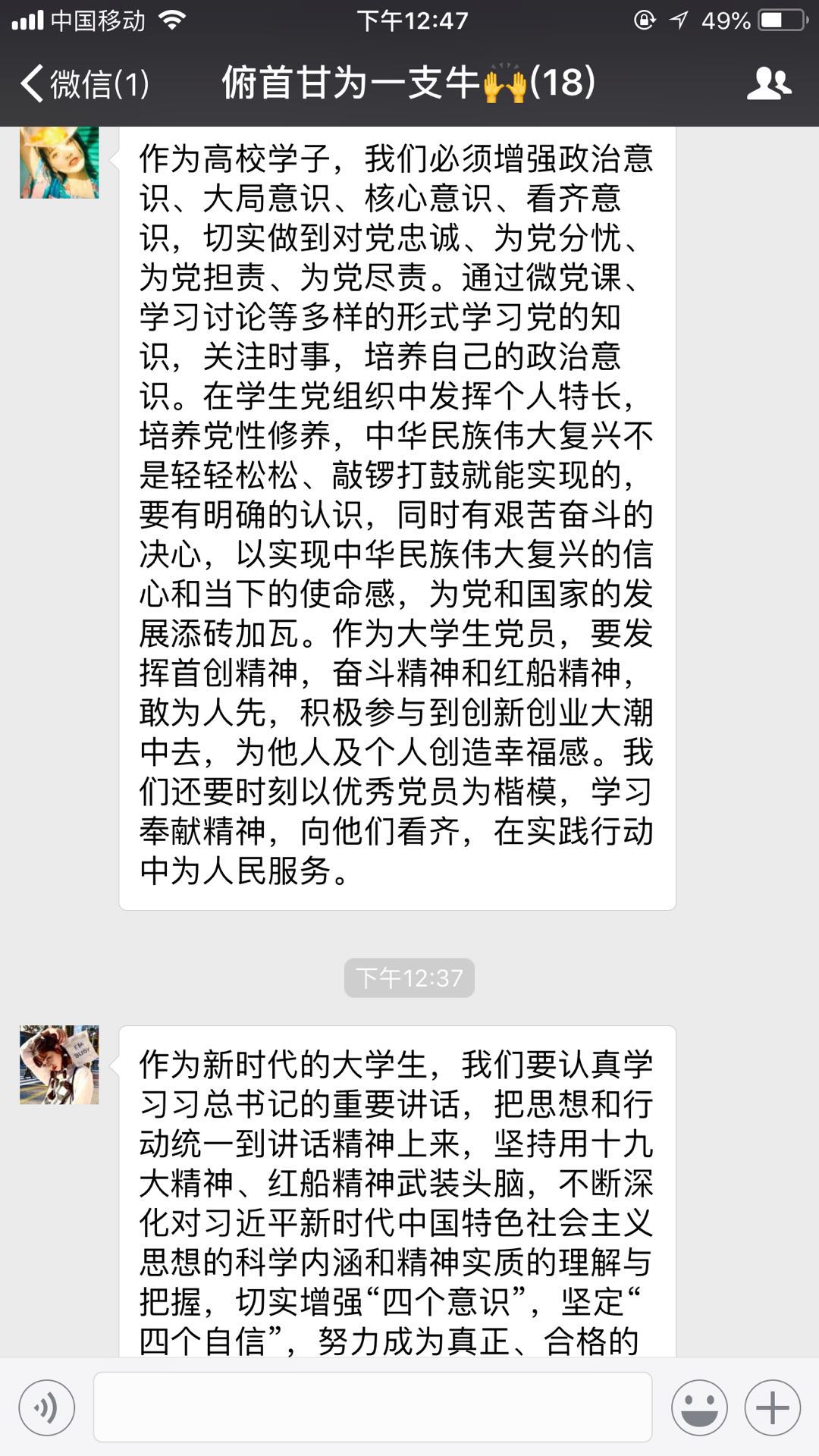 其次,我们还在线上开展了主题交流讨论。各位党员同学围绕主题积极参与讨论,发表意见,相互之间不断学习,不断进步,其他人之所长,补己之短。更进一步增强领悟了党的十九大精神,清晰了当代老员工如何在新时代发挥自己的作用,为夺取中国特色社会主义新胜利贡献自己的知识与力量。