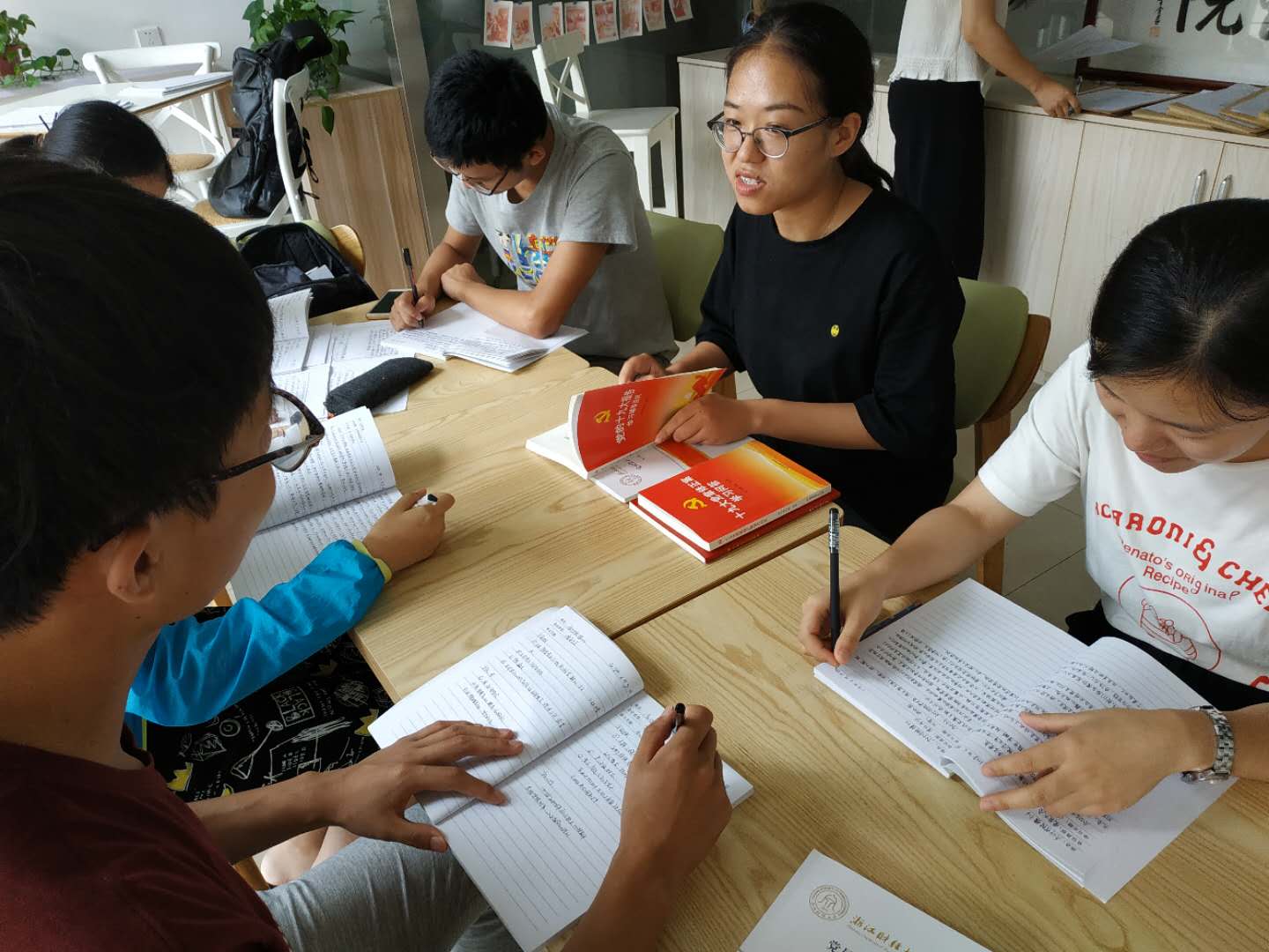 首先,大家开展学“习”小组,学习党章,抄写党章,联系党章结合实际深入思考,学习习近平重要讲话,全面准确学习领会党的十九大精神。同时,大家温习党的成长史,领悟红船精神,大家表示,要紧紧团结在以习近平同志为核心的党中央周围,坚定不移走中国特色社会主义道路,解放思想,改革开放,凝聚力量,攻坚克难,为全面建成小康社会,夺取中国特色社会主义新胜利而奋斗。