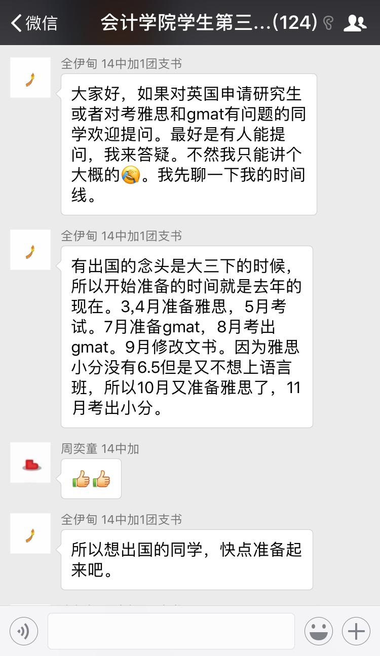 本次交流会分别邀请到永利yl23411官网员工第三党支部中的俞能、全伊甸、陈竞三位大四党员学姐前来分享经验。首先俞能学姐就为什么要考研以及如何考研等问题做了详细讲解,以自己的切身经历向同学们讲述了考研的宝贵经验。紧接着,全伊甸学姐分享了英国申请研究生的流程并对如何提高雅思成绩提出建议。最后,陈竞学姐则详细介绍了自己备考托福以及GMAT过程中的心理状况以及其中的技巧方法,鼓励同学们积极学习,努力拼搏,奋斗不止。