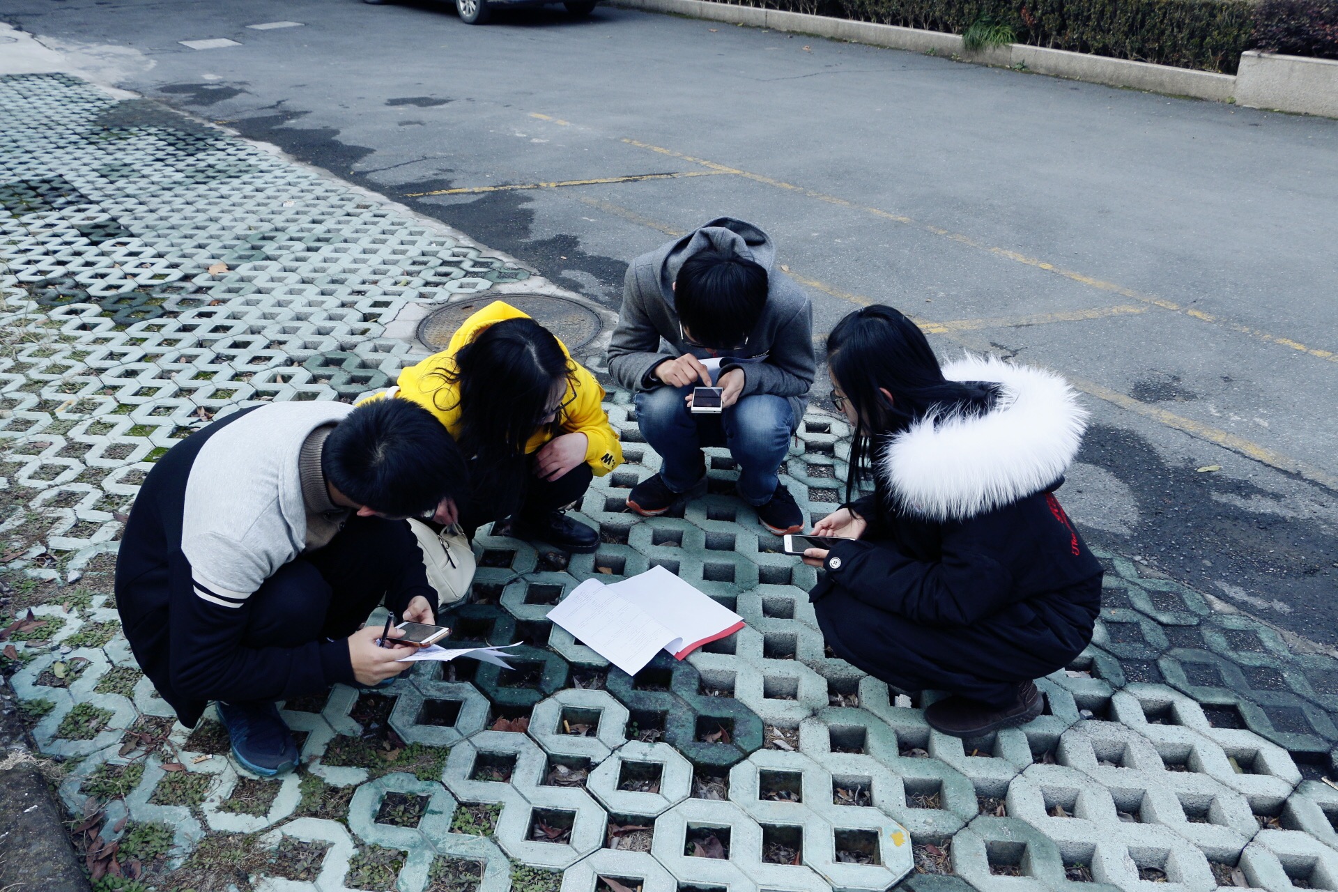 首先,由丁虹同学和浙江大学机电支部的王帅同学详细介绍了此次定向越野规则。两个支部的人被均匀分成8组,每个小组需要通过回答对应的时事政治题目确定下一个应该前往的正确地点,再沿着地图到达。(题目均于党章党史十九大相关,且均为单选题,每一处各组需回答各组对应的3题。)相关的题目早已被安放在浙大校园里的各个隐蔽角落,等待机智的大家去发现。各小组需在到达的每个地点合影以作为抵达证据,用时最短且路线正确无遗漏点者胜利。活动共设有11个定向点,4组不同的路线,将8组分成两批出发。过程中出现了各种各样的的状况,上坡下坡、来回奔波、还得担心自己跑过的点是否都正确,有些还不到半小时就返回原点重新开始,有些路线错误,偏离了原先的正确路线等等。活动持续了2个小时,最快的也用时1个小时。