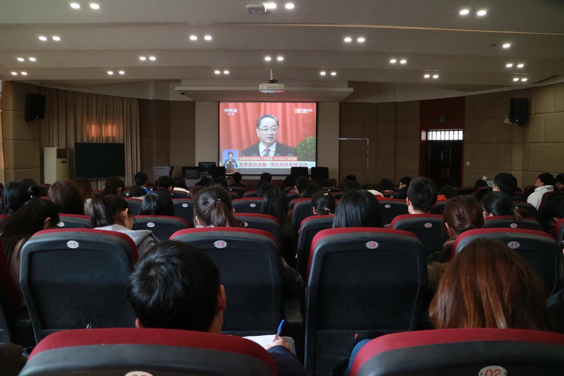 3月3日下午,在两会召开之际,永利yl23411官网积极组织师生观看学习政协会议直播并展开热议。本次学习面向永利yl23411官网全体,部分老师员工干部在公司楼211观看直播,其余员工以公寓为单位在宿舍楼活动中心集中观看。
