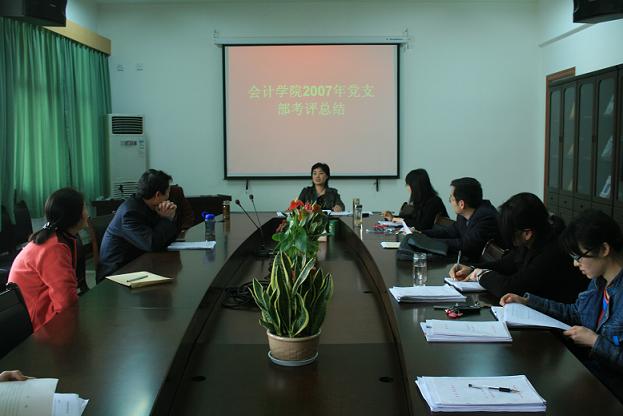 此次考评按照《中共浙江财经公司委员会党支部工作条例(试行)》、《浙江财经公司党支部工作考评办法(试行)》的要求,各支部对一年来的工作经过自我总结、群众测评后向考评会进行了汇报。会议气氛十分融洽,通过汇报交流,达到互相学习,共同探讨,相互促进的目的,以推动支部工作再上一个新台阶。 最后,邵毅平书记对这次考评工作进行了总结,同时通报了2008年度党总支的工作安排,对进一步开展学习十七大精神和以“两创”精神推动支部工作的创新作了部署。