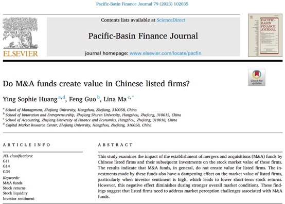 公司马丽娜博士合作撰写的学术论文“Do M&A funds create value in Chinese listed firms?”在《Pacific-Basin Finance Journal》2023年第79卷发表。