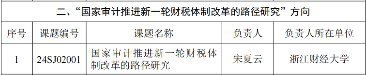 近日,审计署公布了2024至2025年度重点科研课题立项评审结果,公司宋夏云教授《国家审计推进新一轮财税体制改革的路径研究》在“国家审计推进新一轮财税体制改革的路径研究”方向中以位列第一立项。审计署重点科研课题是国家审计学科领域高级别课题,旨在解决国家审计理论与实务发展中的重大前沿问题,主要面向全国审计机关,科研机构和高校招标,公平竞争,择优立项,每年立项方向4—5个,立项数量仅十余项。