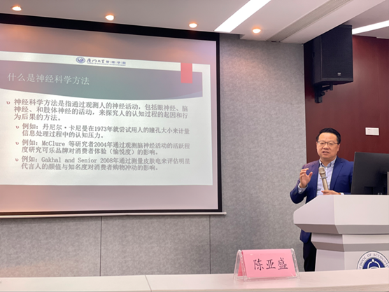 讲座伊始,陈亚盛教授通过对“神经科学方法”的概述引入“神经会计学”。随后,陈亚盛教授描述了国内外对“神经会计学”的研究现状,并指出其新颖性和有用性。最后,陈亚盛教授展开了“神经会计学”研究场景的详细介绍,提出了国内开展神经会计学研究的可行性与优势。