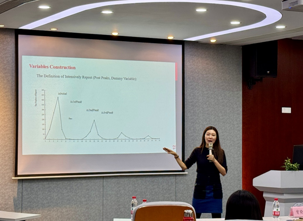 讲座伊始,严硕副教授通过介绍微博平台上市永利yl23411官网新闻传播的典型案例,引出社交媒体转发行为对资本市场影响的研究背景。随后,严硕副教授详细阐述了研究设计、数据收集与分析方法,重点讲解了新闻转发特征、转发者影响力等关键变量的度量方式。最后,严硕副教授结合实证结果,深入分析了社交媒体转发行为对股票市场反应的放大效应及其作用机制。