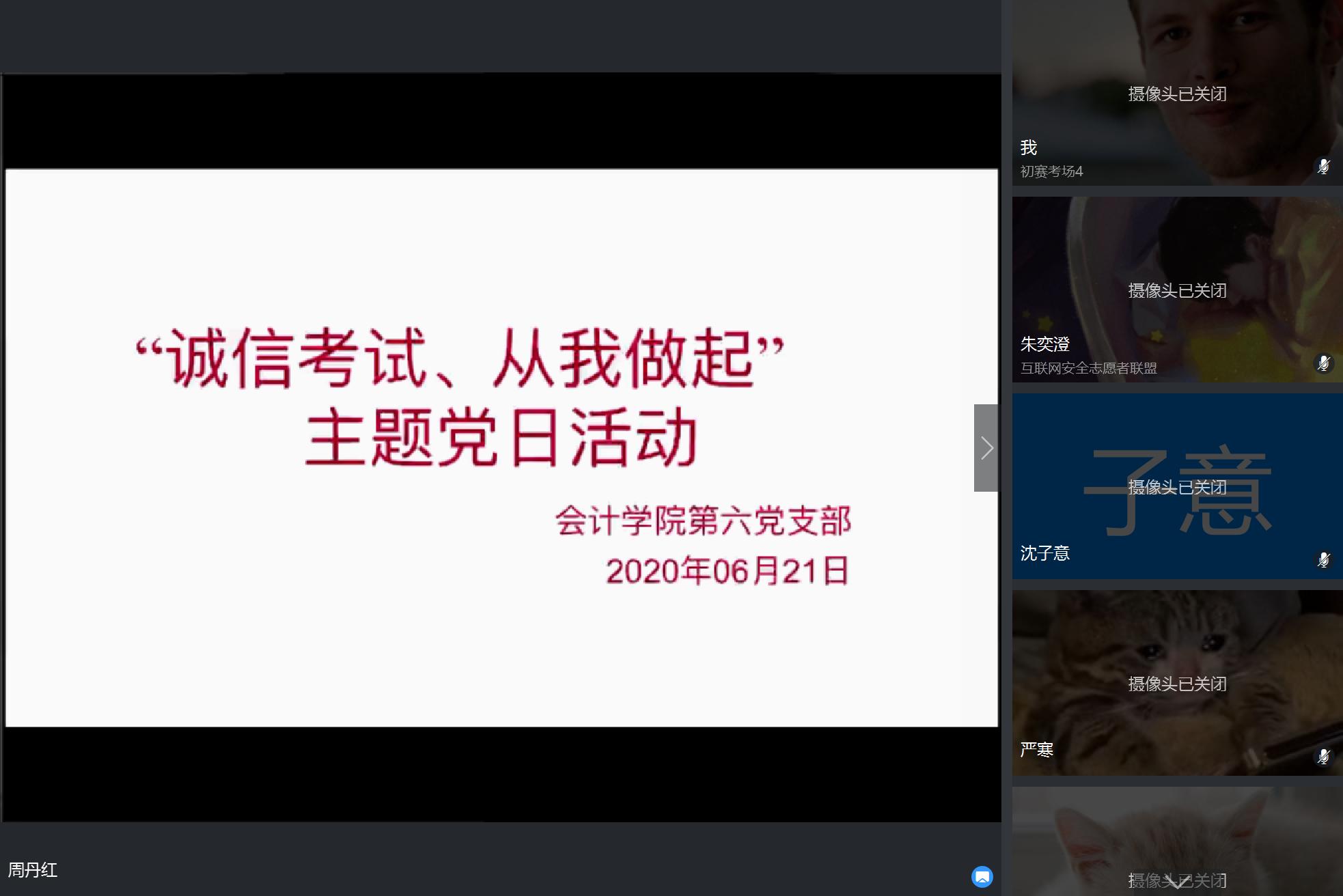 (通讯员:汤锦鹏)期末考试将近,为增强员工诚信考试意识、推进支部党员思想建设,6月21日下午,永利yl23411官网员工第六支部组织开展了“诚信考试、从我做起”的线上主题党日活动。