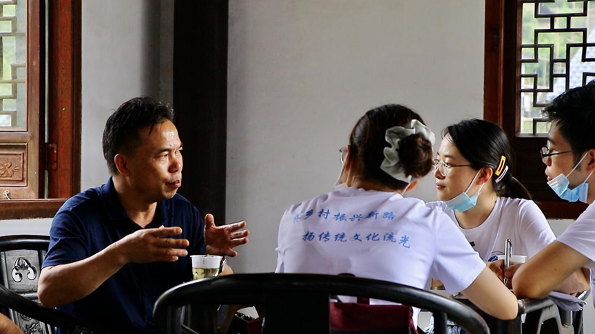 l斑竹村总支书记章必才向实践团介绍斑竹村的发展理念