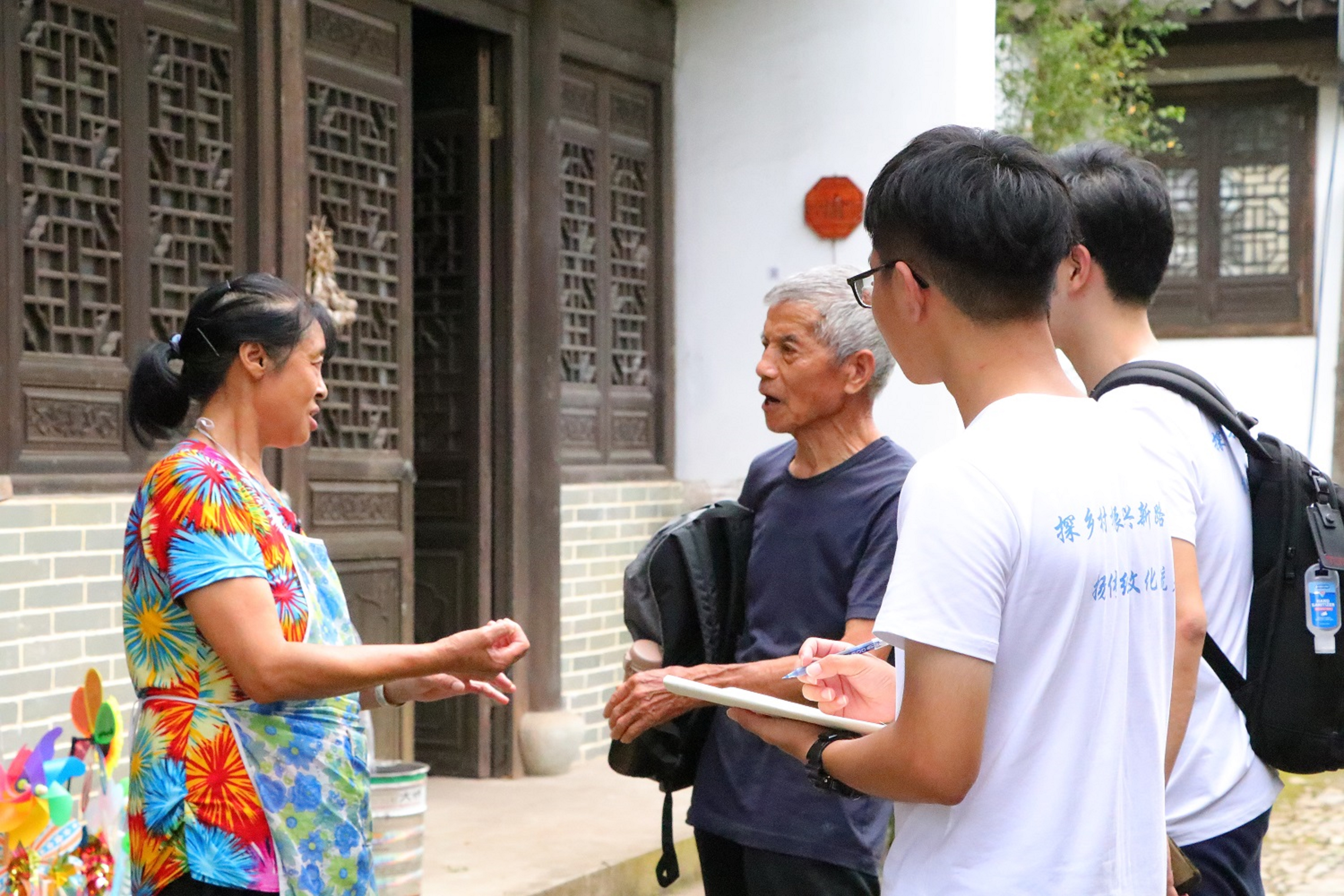 l村总支书记章必才向实践团介绍章氏宗祠的精美工艺与丰厚的历史文化基因