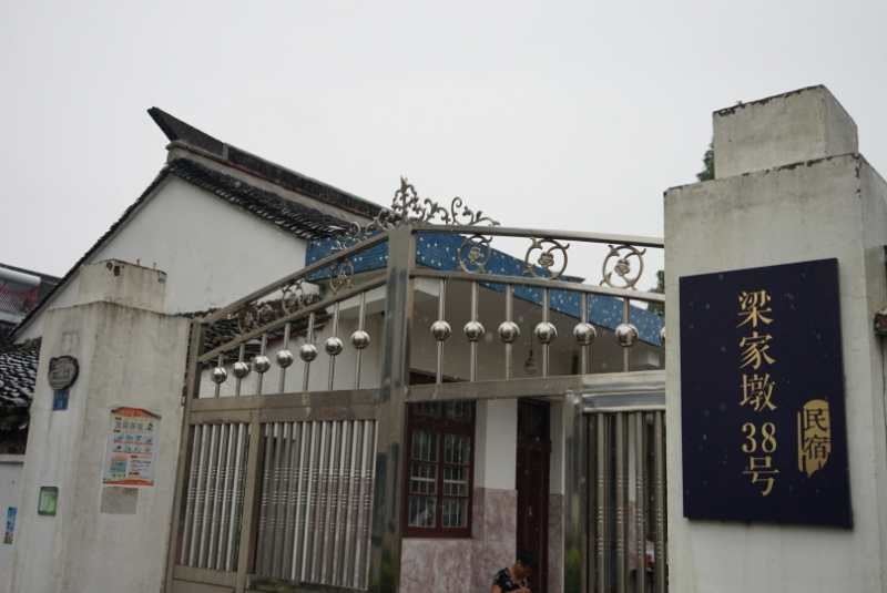 在丁桥镇团委谢书记介绍中,队员们得知海宁梁家墩原本只是一个默默无闻的农耕村落,住着105户人家。在那个时候,梁家墩的生态环境是出了名的脏乱差,在小路上随处可见家禽粪便和丛生的杂草,村里有时还会遭到小偷的“光顾”,治安管理能力也有待提高。自从2013年新仓村创建美丽乡村,梁家墩实行企业、村集体、农户“三位一体”的管理模式,村集体引入社会资本成立旅游管理开发公司,负责整个景区的建设、推广和营销,村民利用自家闲置住房经营餐馆、民宿等旅游业态,并在房前屋后种上了绿化花草,使梁家墩成了远近闻名的示范点村落。现如今,梁家墩已开出多家餐馆和几十家民宿,是浙江省3A级示范村,村民们也都做起了结合自身发展做起了小本生意,使整个梁家墩变得更加生机勃勃。