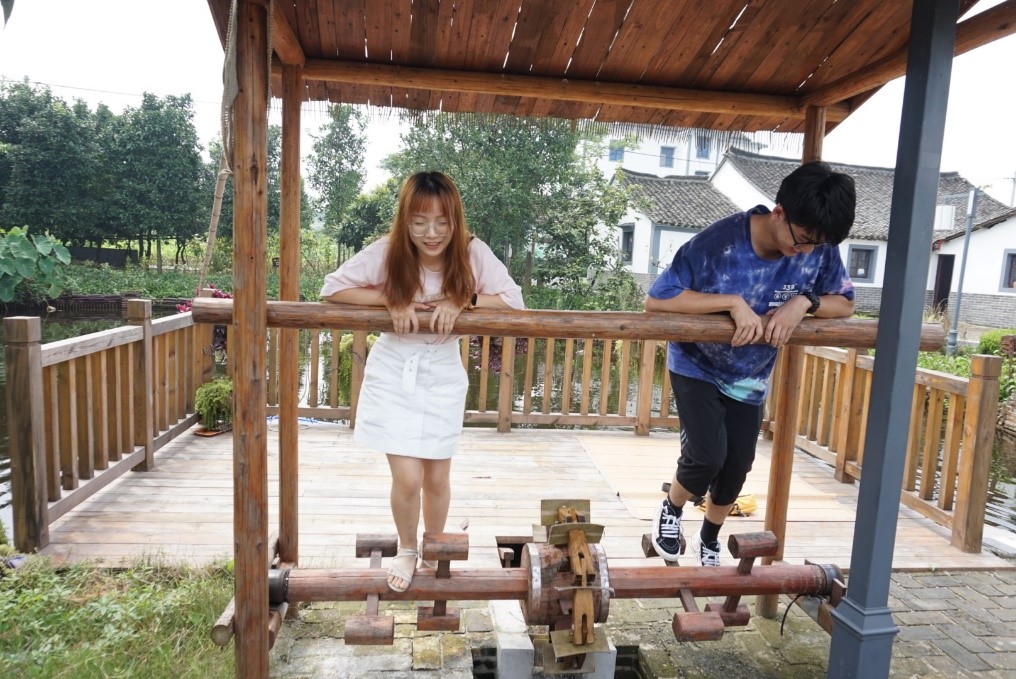 第三日,实践服务团到达了此次服务活动的终点站————盐官镇祝会村。在祝会村团委书记的带领下,队员们参观了祝会九礼代表景点——“乡学礼、乡居礼、乡情礼、乡田礼、乡食礼、乡节礼、乡景礼、乡乐礼、乡市礼“。干净的村道连起整个村庄,沿途的农家小舍错落有致,房前屋后草木茂盛、绿意盎然,推窗见绿、抬头赏景、起步闻香。成员们体验了江南水乡的另一番风味,也为合力推进星级美丽乡村建设贡献了自己的青春力量。