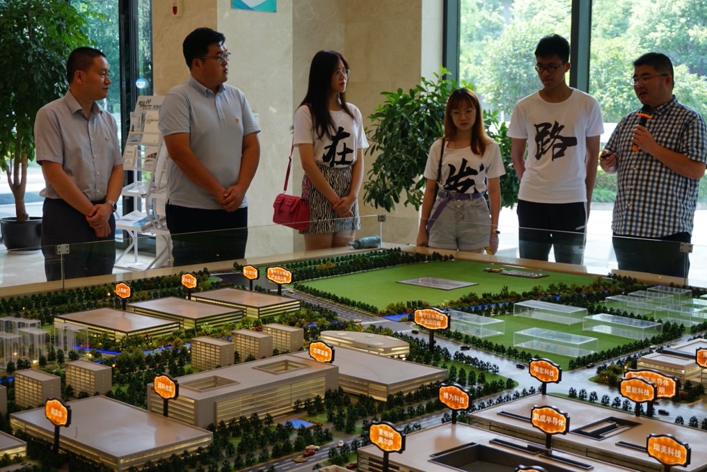在上海漕河泾新兴技术开发区海宁分区内,实践观察团通过参观园区规划沙盘和海宁乐众科技有限公司与浙江孚硕电通股份有限公司,深入透视了海宁市落实长三角一体化发展战略的创新举措和具体实践。开发区内的电子信息产业以集成电路和半导体工业为主,是上海漕河泾开发区发展和壮大的支柱产业,这为海宁把泛半导体产业作为战略性重点产业培育带来了重要助力。目前,半导体装备及元器件产业已在海宁形成良好的发展态势。
