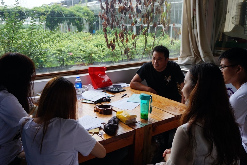 随后,团队成员前往了位于丁桥镇海星村的上农蓝莓小镇。蓝莓小镇由海宁市上农农业科技开发有限公司投资建设,占地面积450多万亩,栽种蓝莓苗10万株,品种16个,集果品加工、销售、休闲养生、科普、旅游、观光采摘为一体。上农蓝莓小镇以蓝莓、葡萄为主要种植产品,不仅具有良好的经济效益,还为当地提供了一百多个工作岗位,为促进当地农村剩余劳动力转移发挥了重要作用。除此之外,有着7年种植经验和技术的蓝莓小镇负责人丰福平还向当地及周边地区农民普及蓝莓种植技术,带动农民发展蓝莓种植,为农民创造了增收渠道,促进了和谐社会的建设。