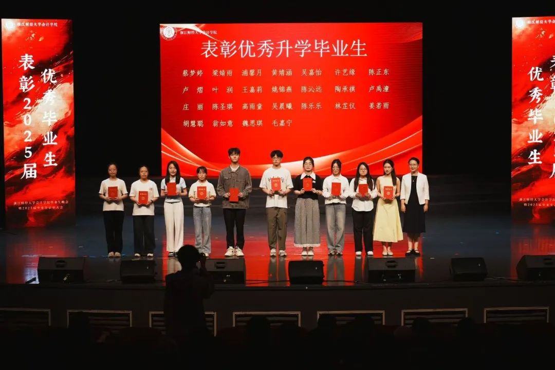 在表彰环节,ACCA、CIMA全科通过、考研升学、省优校优等优秀毕业生代表先后登上舞台,接受祝贺和表彰。他们以扎实的学识和坚韧的毅力,生动诠释了MAQ型“会乐金生”的风采,书写了无愧于青春的答卷。他们的身影,是公司育人成果的璀璨缩影,更是未来社会的栋梁之材。