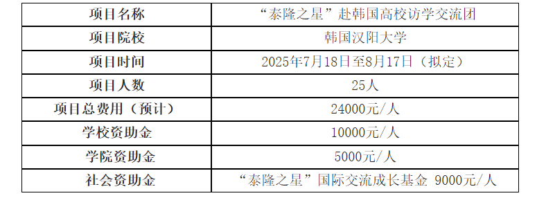 ②韩国汉阳大学访学项目介绍详见国际交流合作处项目链接:https://vlink.cc/hess。