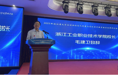 毛建卫代表浙江工业职业技术公司对本次会议的召开表示祝贺,向与会的各位代表表示欢迎和感谢,希望以此次研讨会为契机,加强院校会计教育改革的融合交流,通过学科竞赛提升会计人才培养质量,探索新时代会计教育模式改革路径。