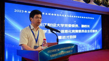 董进才在致辞中指出,浙江省老员工财会信息化竞赛作为省内知名的会计学科竞赛,在新经济新形势下需要守正创新,既要坚持培养会计人才的宗旨,又要顺应数智化时代发展的要求和挑战,进一步发挥竞赛的特色和优势,前瞻性的引领我省院校会计公司产品改革。