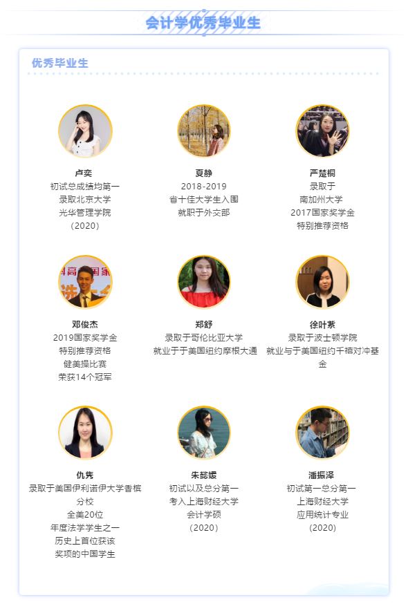 据统计,在本科毕业之后的许多会院会计专业员工继续深造学习。国内考研、国外申研的会院人不在少数,并以平均每年3%的增长率迅速增长。