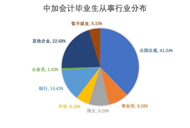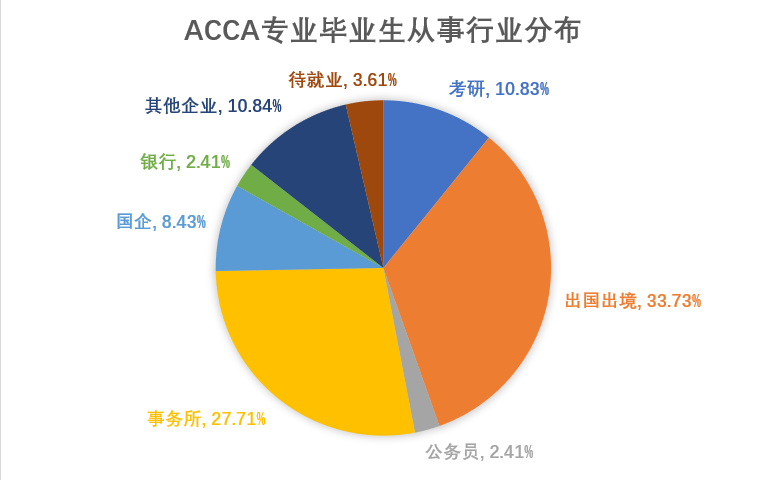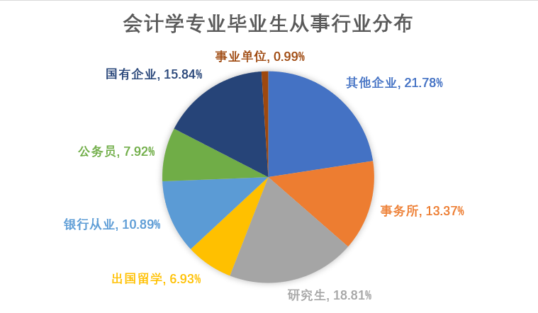 下列饼图为2019年会计学(会计学,ACCA方向,会计学中加班)专业的就业去向。