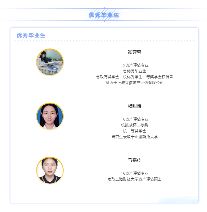 (3)国内最早设立资产评估专业的十所高校之一(浙江首个),也是浙江唯一一所同时开设资产评估本科与专业硕士的高校。