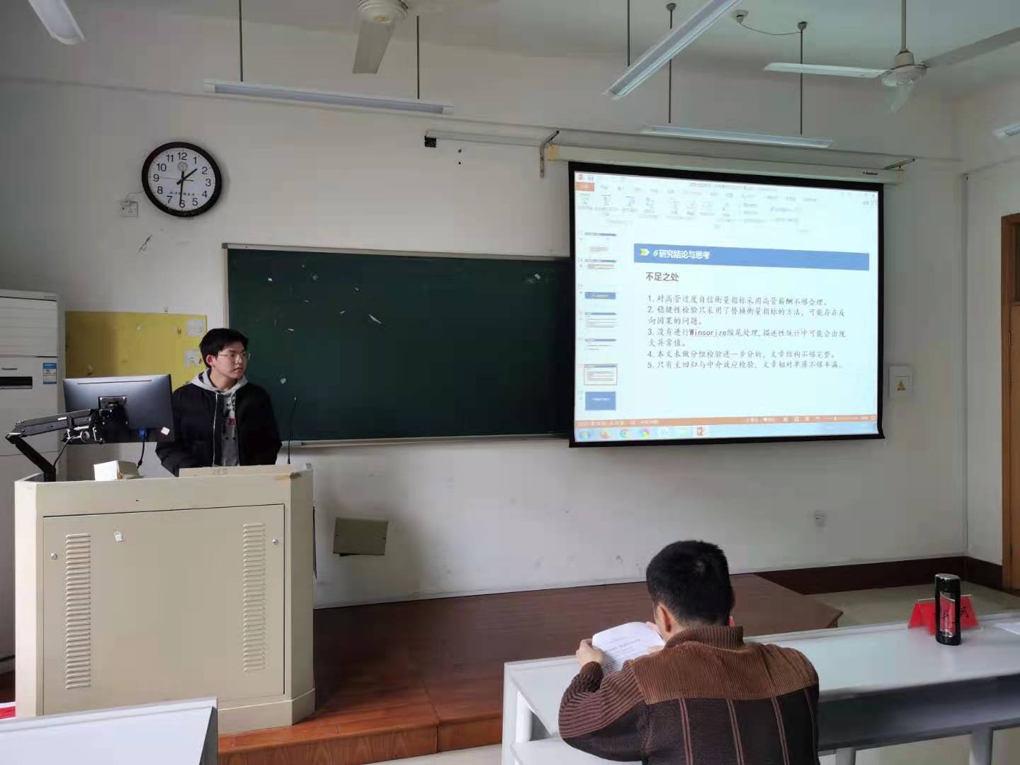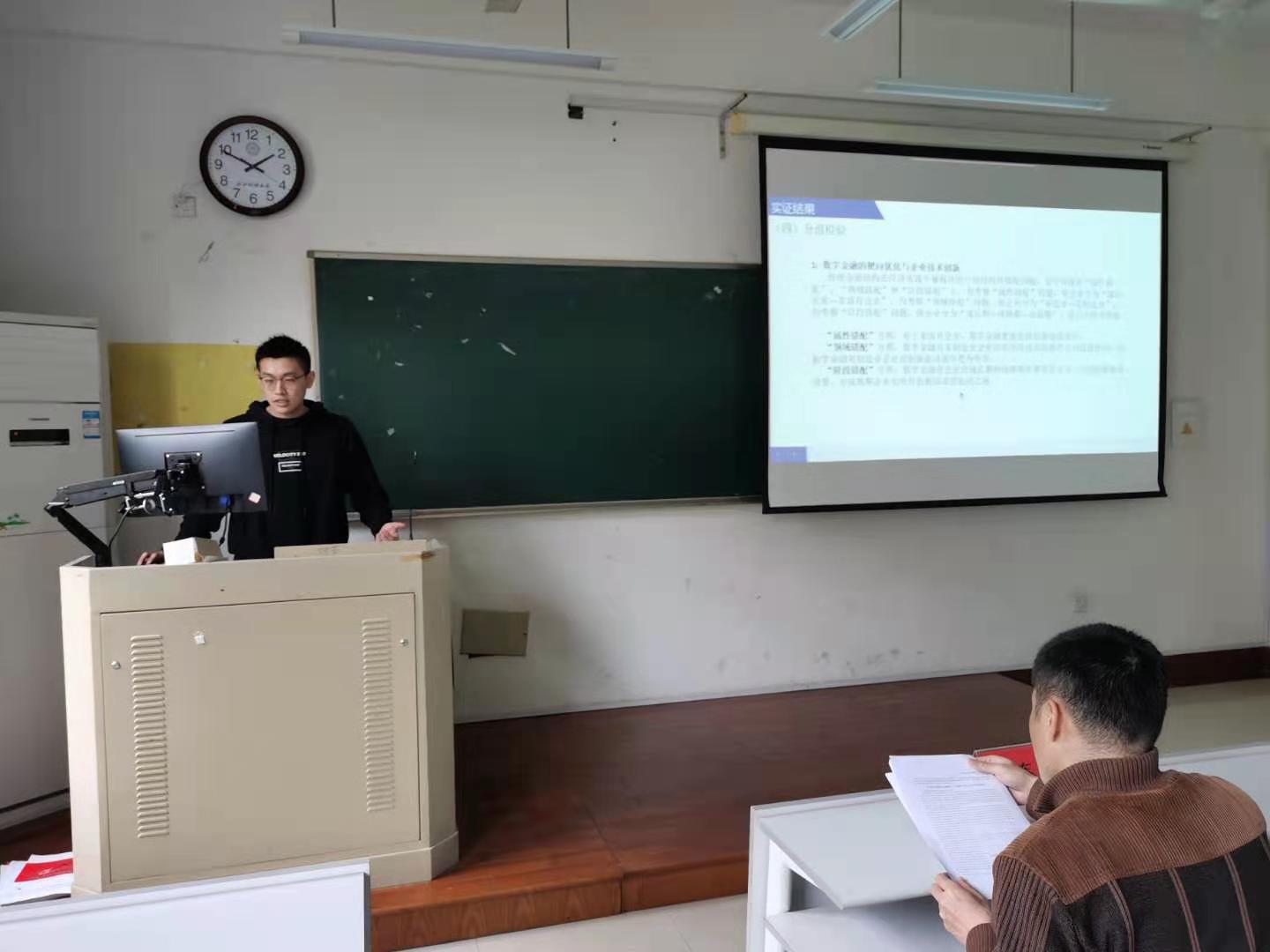其次,陈新楷同学给大家分享了题为《数字金融与企业技术创新——结构特征、机制识别与金融监管下的效应差异》的论文。数字金融作为传统金融通过科技赋能方式形成的新产物,对微观企业技术创新乃至宏观经济发展质量而言都有着重大影响。本文基于2011~2017年沪深两市A股上市公司数据,探讨数字金融发展对企业技术创新的影响及其内在机理。研究发现,数字金融发展对企业技术创新的确存在“结构性”驱动效果。特别地,数字金融的深度发展对企业技术创新的促进效果在较长一个时间序列上都稳健成立。进一步来看,数字金融的发展能够有效校正传统金融中存在的“属性错配”、“领域错配”和“阶段错配”问题,并且在金融发展禀赋较差的地区,数字金融展现出更强的企业技术创新驱动效果,从而具备了较好的普惠特征。机制分析表明,数字金融发展能够有效解决企业的“融资难、融资贵”问题,并能够驱动企业去杠杆、稳定财务状况,这些都有助于企业技术创新产出的增加。此外,数字金融对企业创新的促进效果离不开有效的金融监管,在合理的金融监管约束下,数字金融的深度发展对微观主体创新活动的促进作用更加明显。本文的研究结论为数字金融的发展优化、实现创新驱动及完善金融监管框架提供可靠经验证据和政策启示。同学们认真听取了陈新楷同学的汇报,并做了记录和交流。