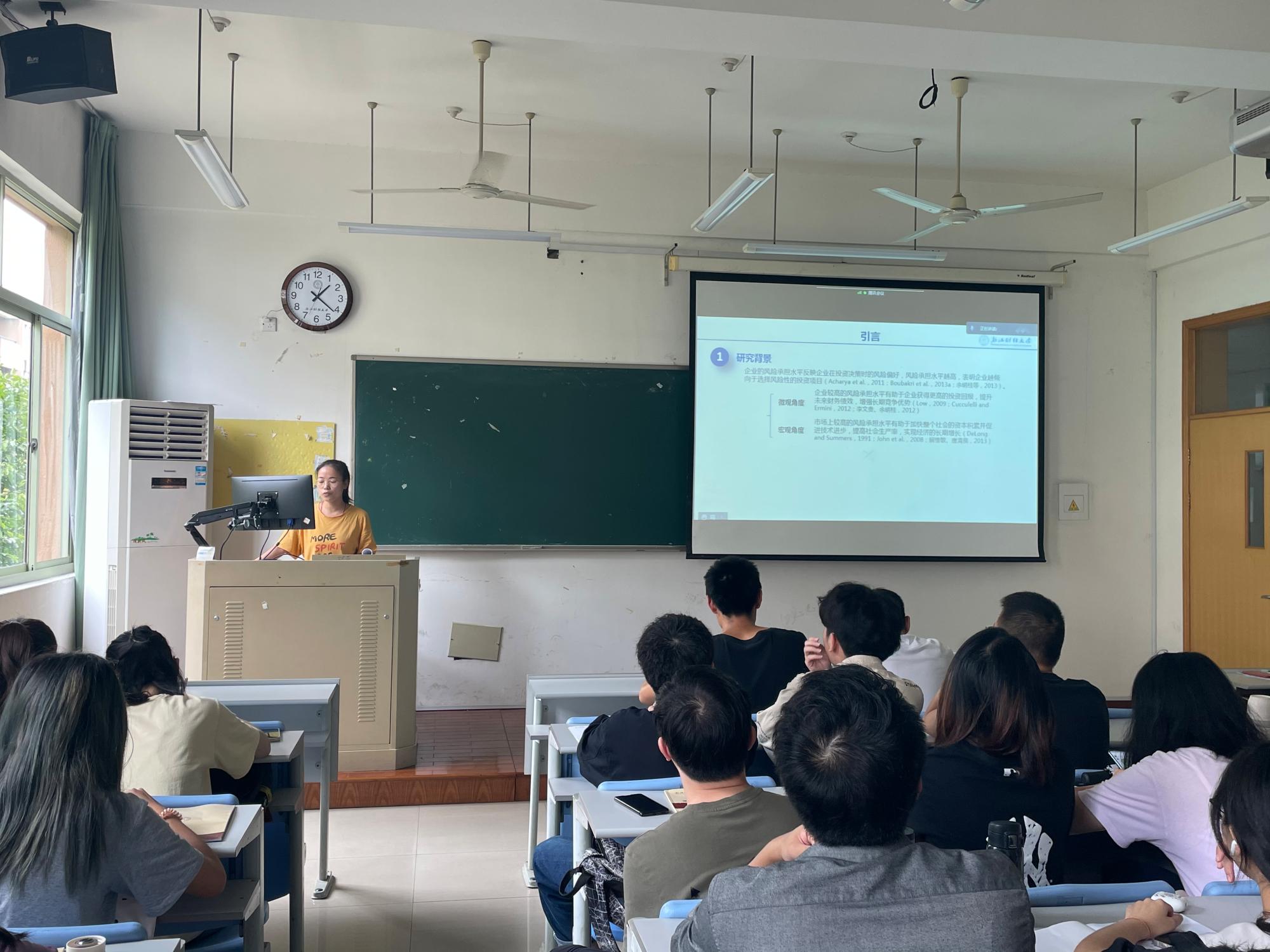 首先,沈国燕同学分享的文章题目为《社会网络与企业风险承担——基于我国上市公司的经验证据》。该文章以我国2001-2012年沪深上市公司为研究样本,研究了社会网络对企业风险承担的影响。研究结果表明,社会网络有助于提升企业的风险承担水平;同时,企业所在地区市场化水平越低,高管激励越充分,企业面临的投资机会越多,社会网络对风险承担的促进作用越强。进一步的研究结果表明,相对于总经理构建的社会网络,董事长构建的社会网络更有利于提升企业的风险承担水平;社会网络对企业风险承担的影响具体表现为债务融资和研发水平的提升,即社会网络越丰富,企业负债越高,研发投入增长越快。该文章丰富了社会网络与企业风险承担领域的文献,对企业提升风险承担水平具有重要的借鉴意义。