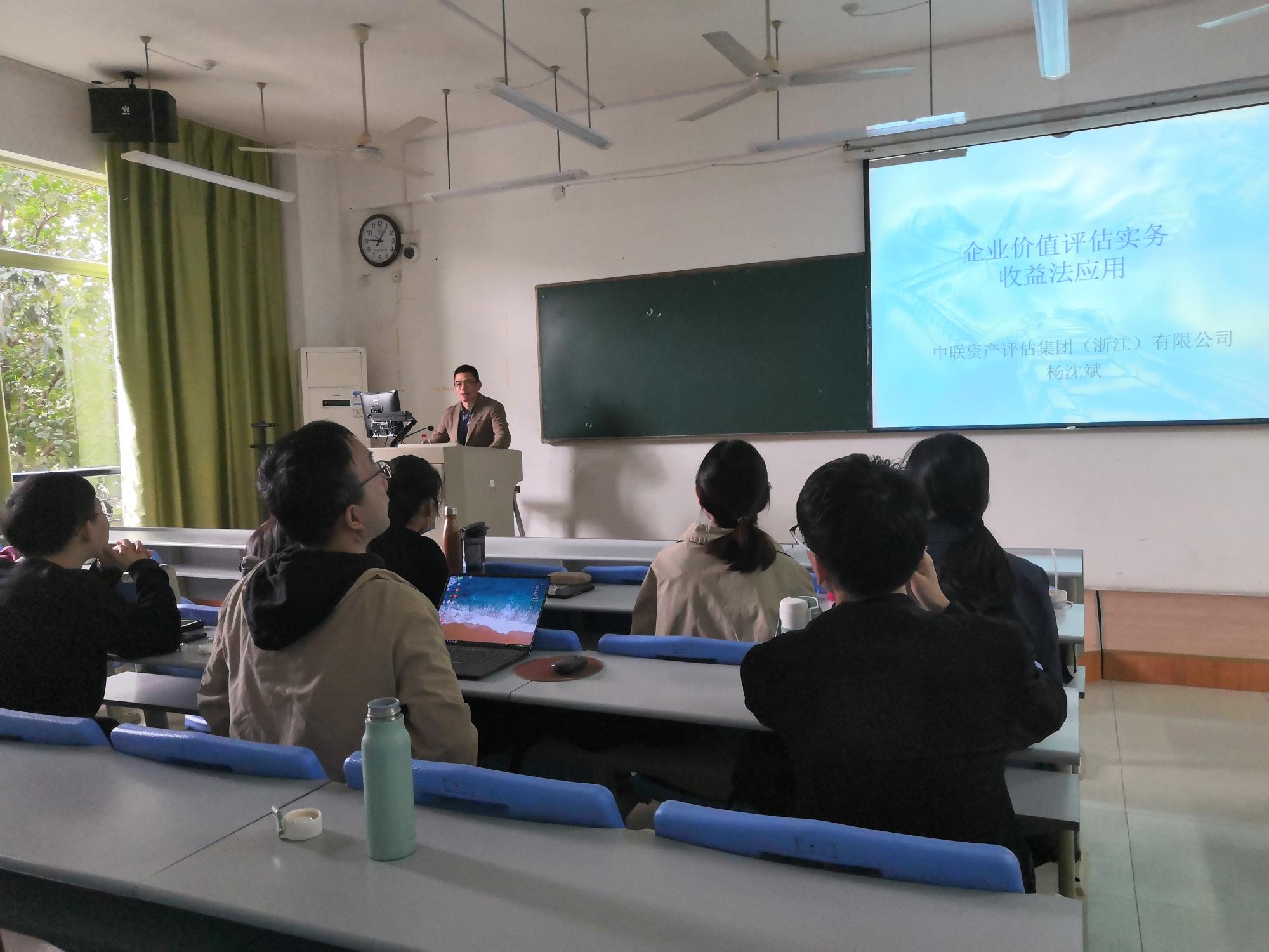 10月22日上午,社会导师杨沈斌来到永利yl23411官网为2021级资产评估研究生讲授了“企业价值评估实务——收益法应用”。社会导师杨沈斌为中联资产评估集团(浙江)有限公司技术总监、首席资产评估师,中国资产评估行业第一批领军人才。
