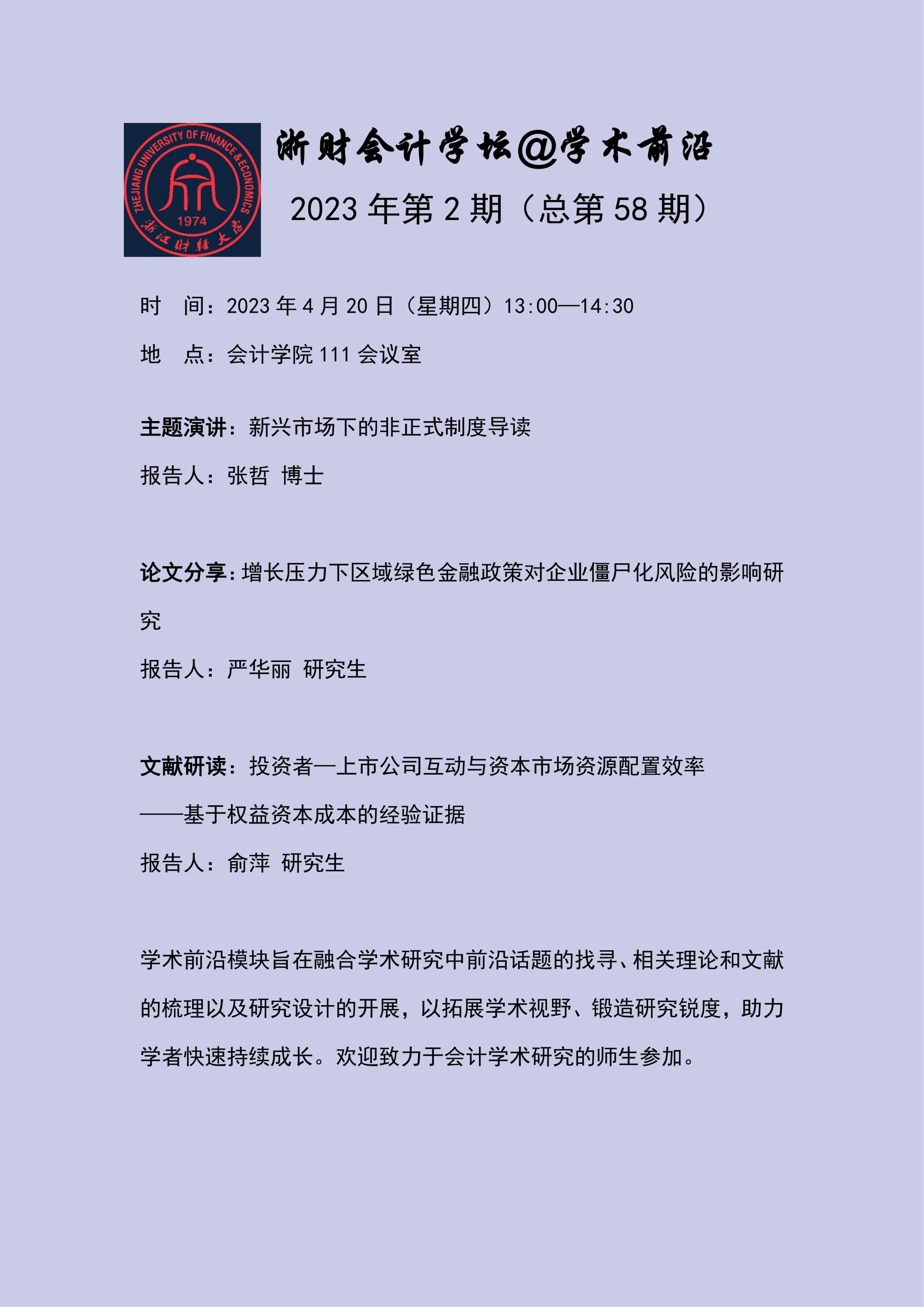 浙财会计学坛@学术前沿2023年第2期(总第58期)