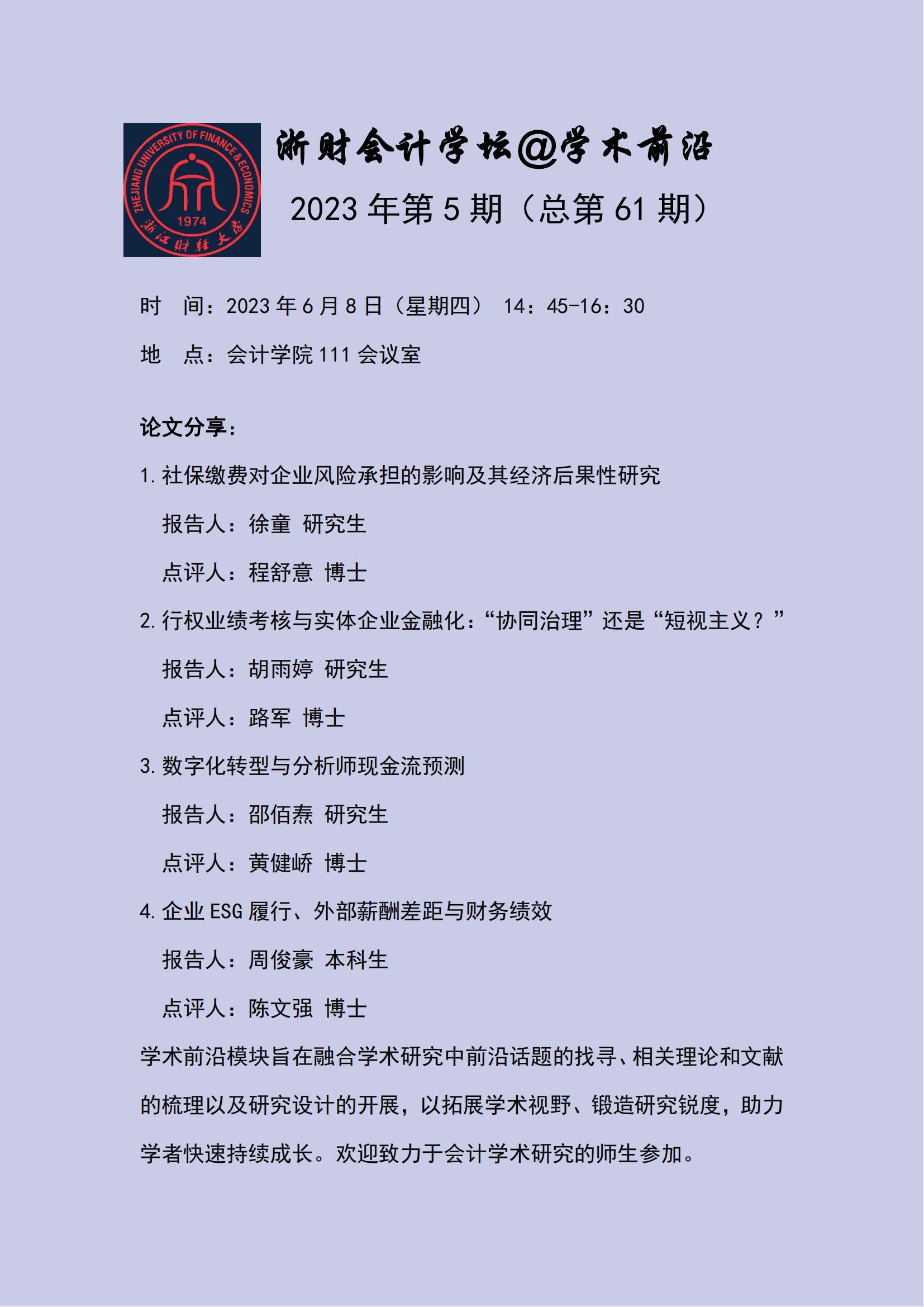 浙财会计学坛@学术前沿2023年第5期(总第61期)