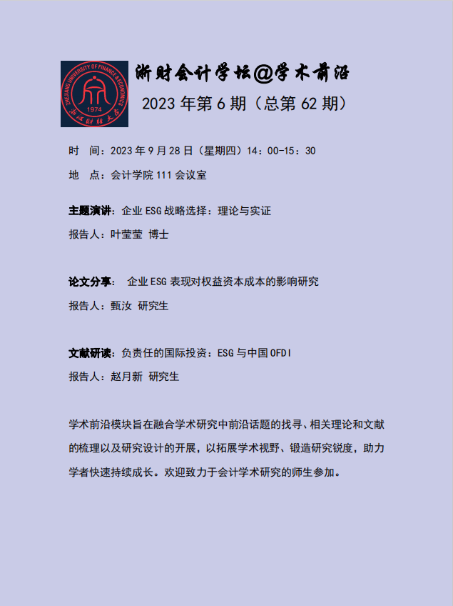 浙财会计学坛@学术前沿2023年第6期(总第62期)