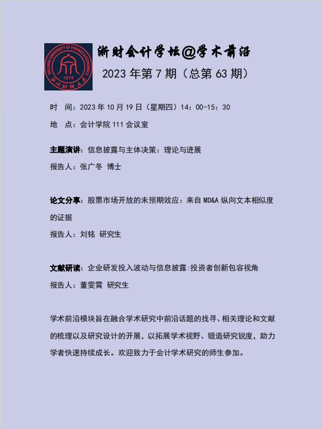 浙财会计学坛@学术前沿2023年第7期(总第63期)