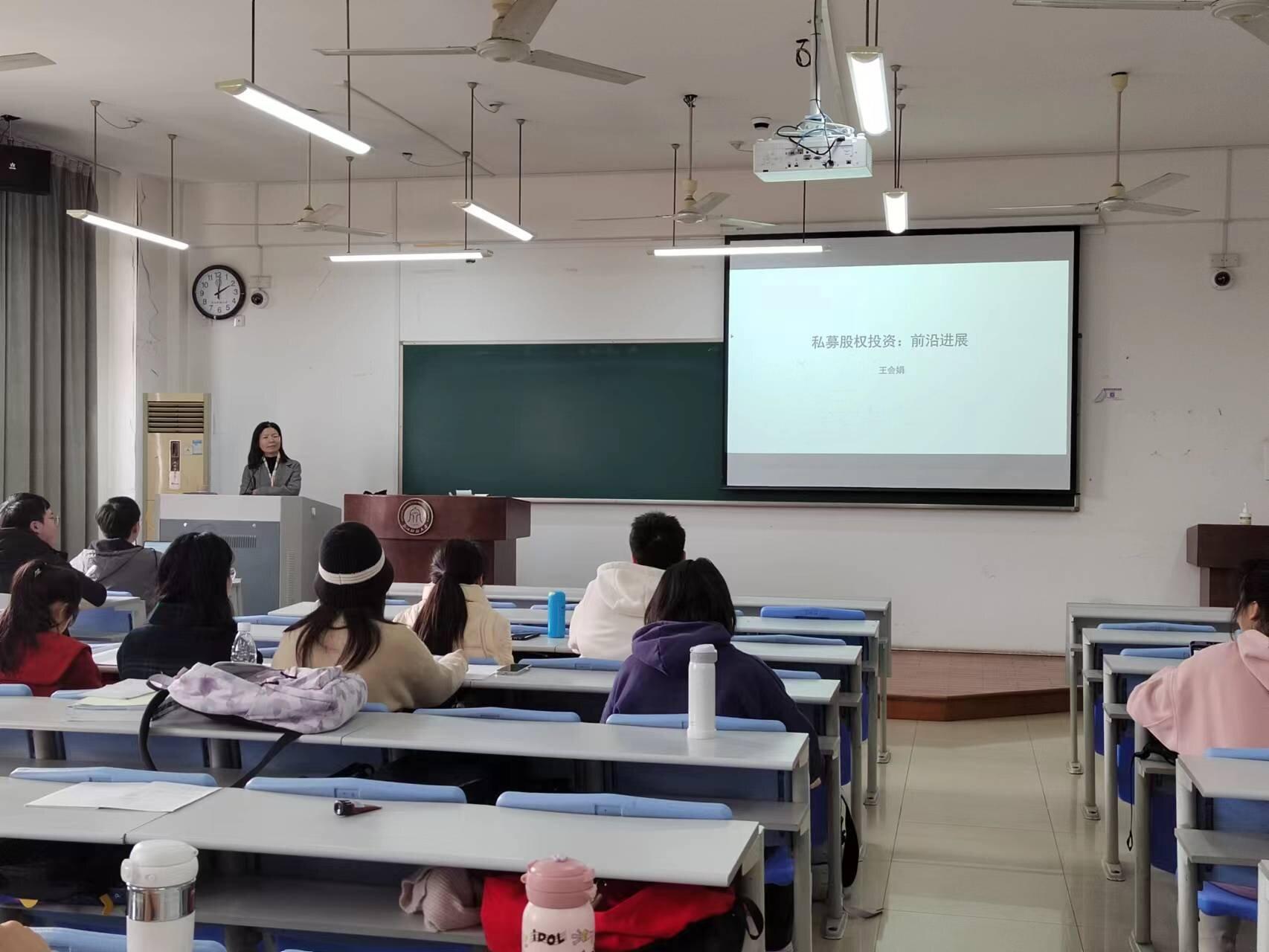 首先,王会娟教授以《私募股权投资:前沿进展》为主题进行演讲。主要包括私募股权相关方面的介绍。内容分别从基金,包括基金特征、分类、优势,基金盈利、私募股权投资基金运作模式分类、私募基金增值过程、合伙制私募基金、PE投资流程展开。