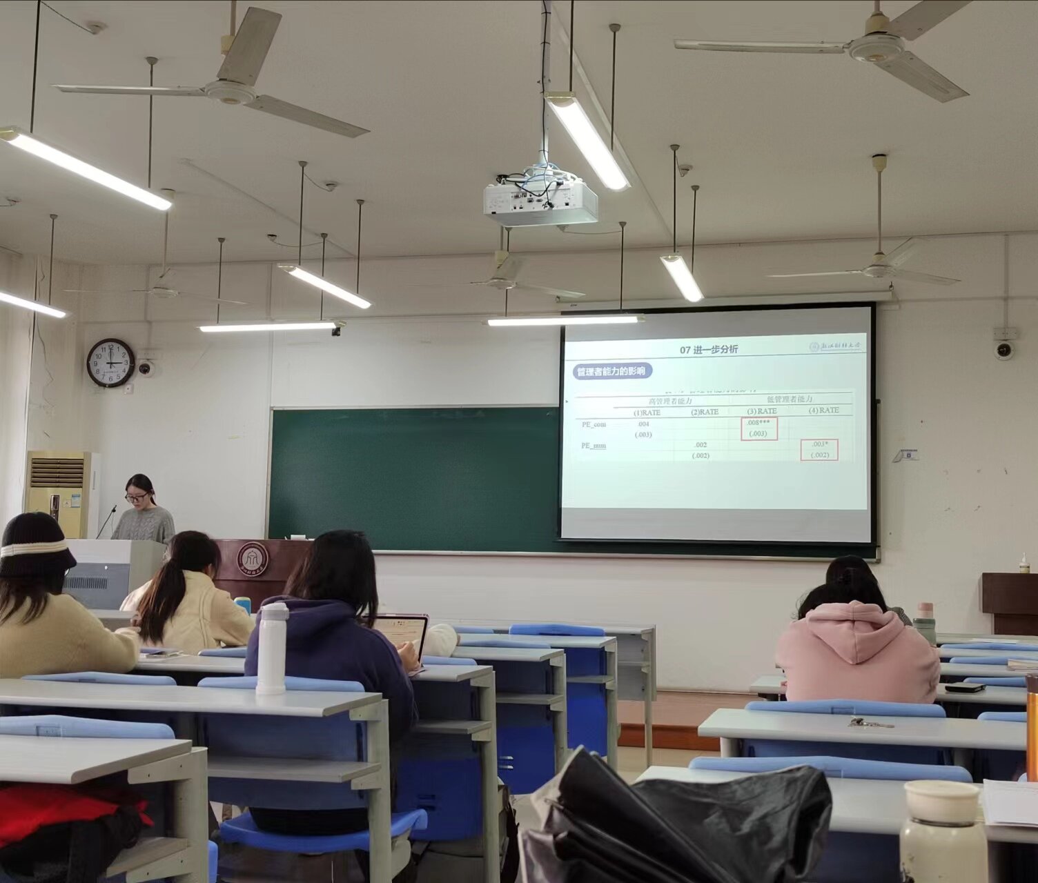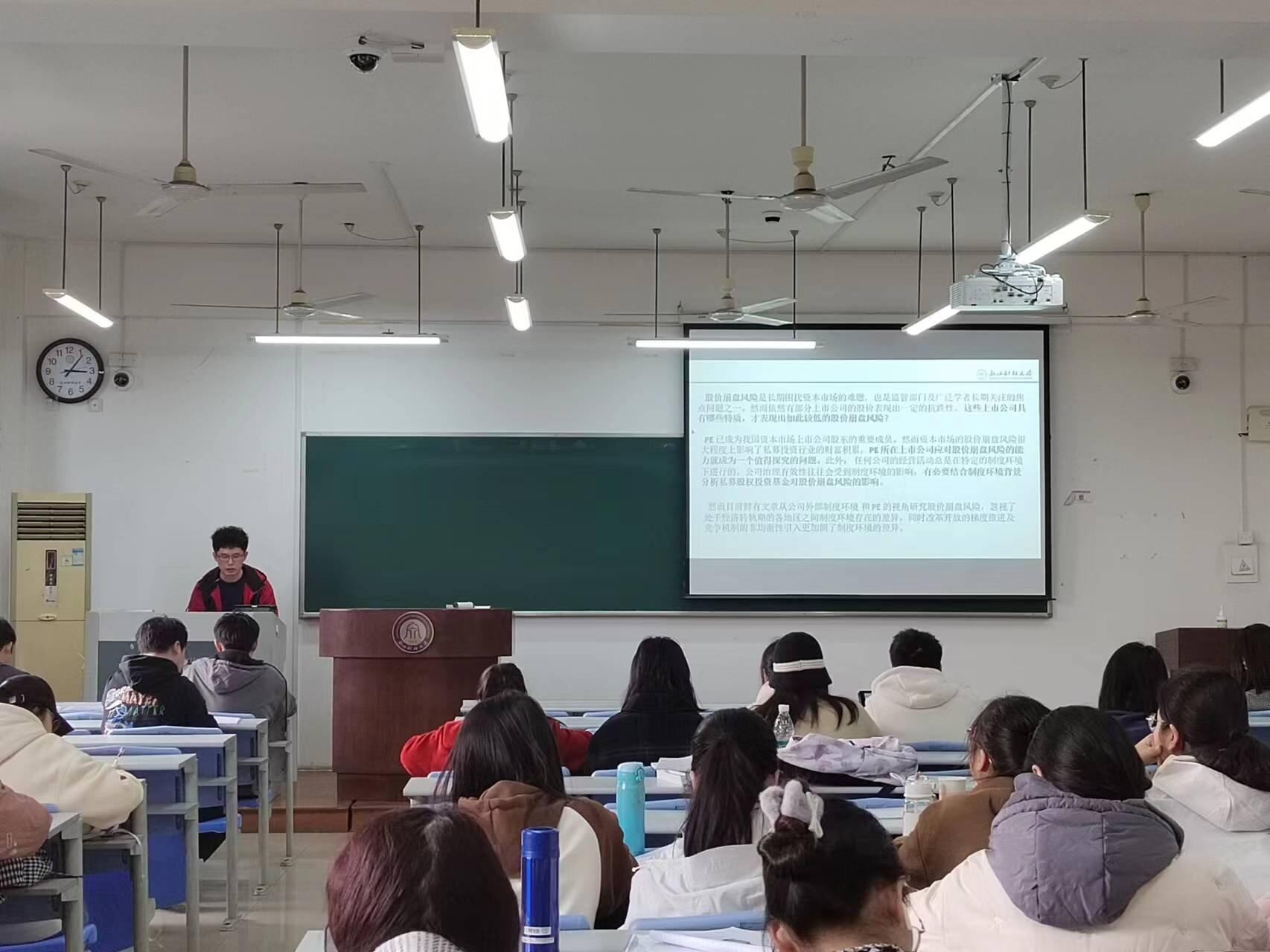 最后,韩仕浩同学分享论文《私募股权投资、制度环境与股价崩盘风险》。该文研究发现股价崩盘风险严重损害了资本市场的稳定性,影响了投资者的信心。在我国,PE作为资本市场的新兴力量,不仅可以提高公司治理水平,还对稳定资本市场具有一定的作用,因此,我国企业可以根据自身情况优化PE投资选择,适时引入PE改善公司治理。外资背景PE和国有背景PE的治理效果更优,因此,应加强我国PE团队的建设,提高民营PE团队的监督管理水平。此外,我国制度环境一定程度上也会弥补公司内部治理的不足,为保护投资者利益,维护我国资本市场的稳定,也有必要加快我国企业外部制度环境的建设。