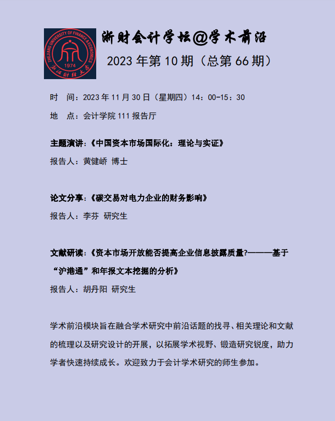 浙财会计学坛@学术前沿2023年第10期(总第66期)