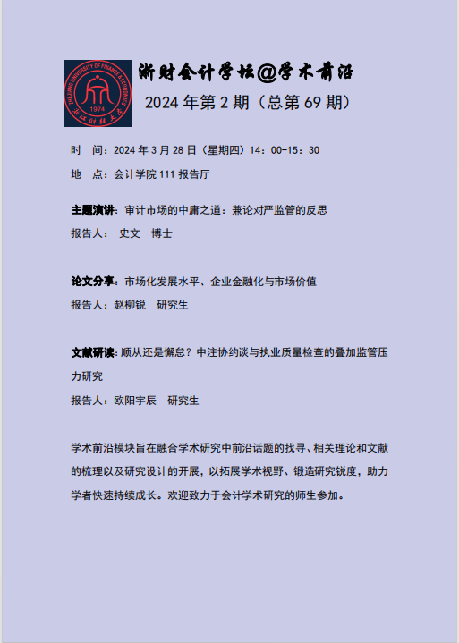 浙财会计学坛@学术前沿2024年第2期(总第69期)