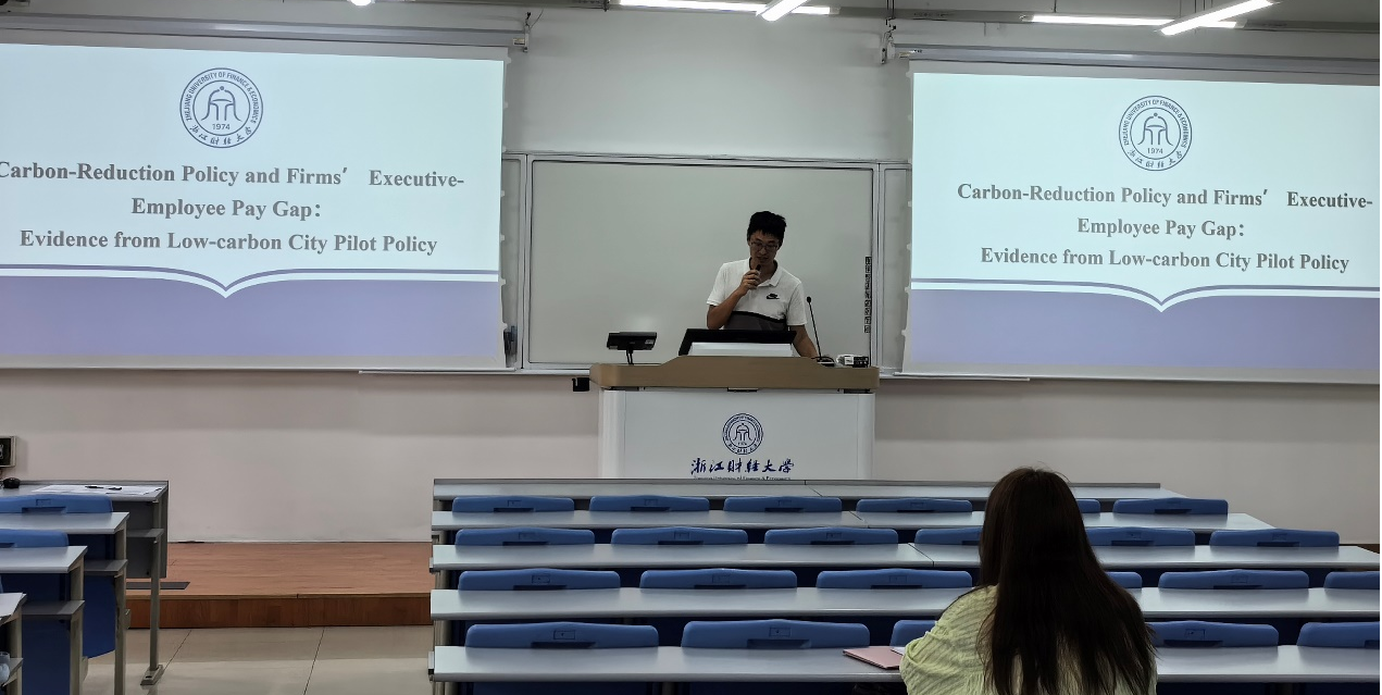 首先,谢乔昕老师的演讲主题是《低碳转型的非预期后果研究》,首先介绍了研究的缘起,即碳达峰和碳中和双谈目标的提出和稳步推进(开展了三批次低碳省区和低碳城市的试点工作)。其次,谢老师总结了低碳城市试点政策领域和内部薪酬差距领域的文献梳理,进而引导假设的提出——减碳政策会促进企业高管-员工的薪酬差距的扩大。最后,谢老师对数据来源、回归模型、异质性分析、稳健性检验等实证部分进行细致的讲解,提出文章的边际贡献在于从内部薪酬差距入手,丰富了减碳政策微观效应相关研究,具有明确的政策启示意义。