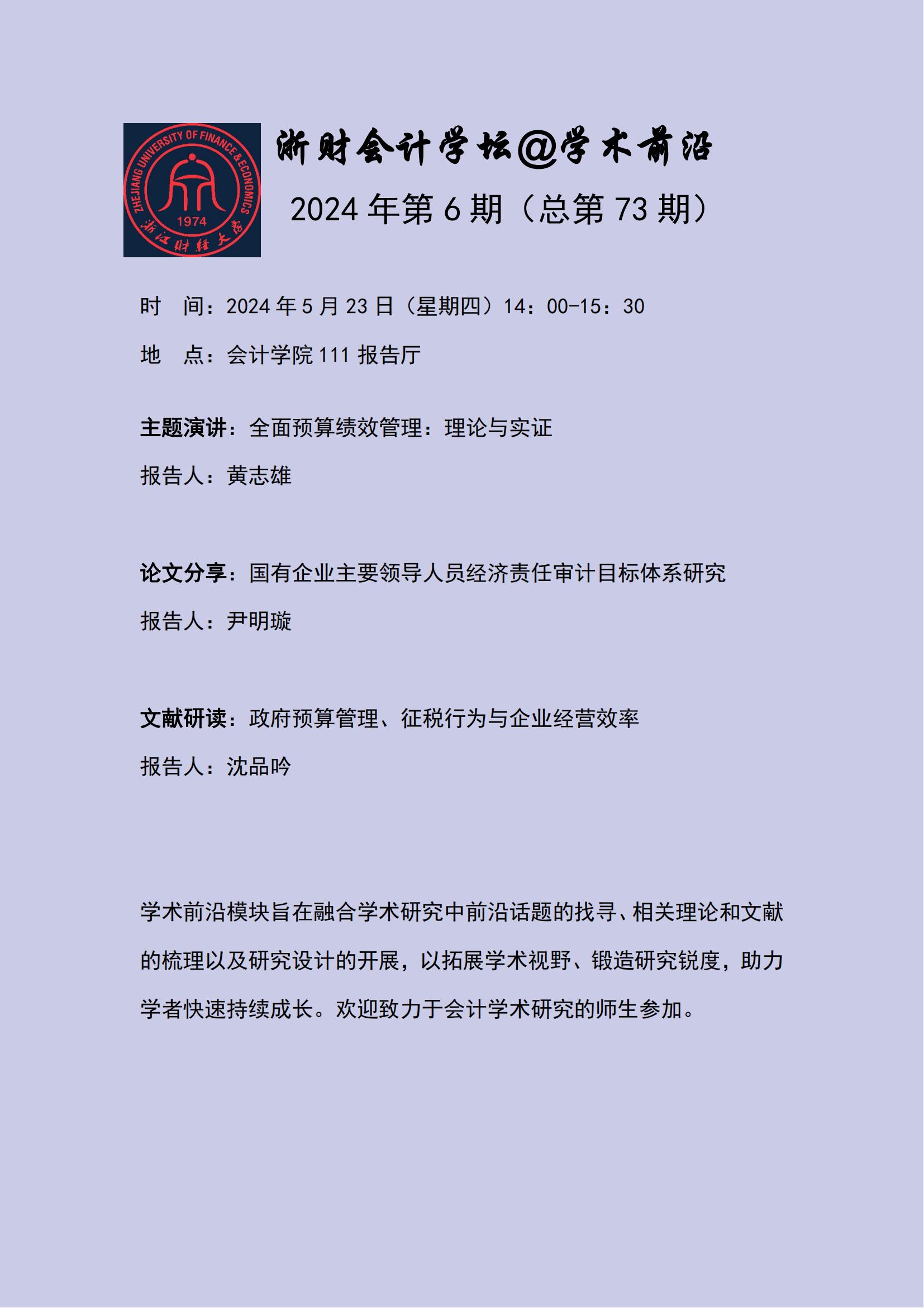 浙财会计学坛@学术前沿2024年第6期(总第73期)