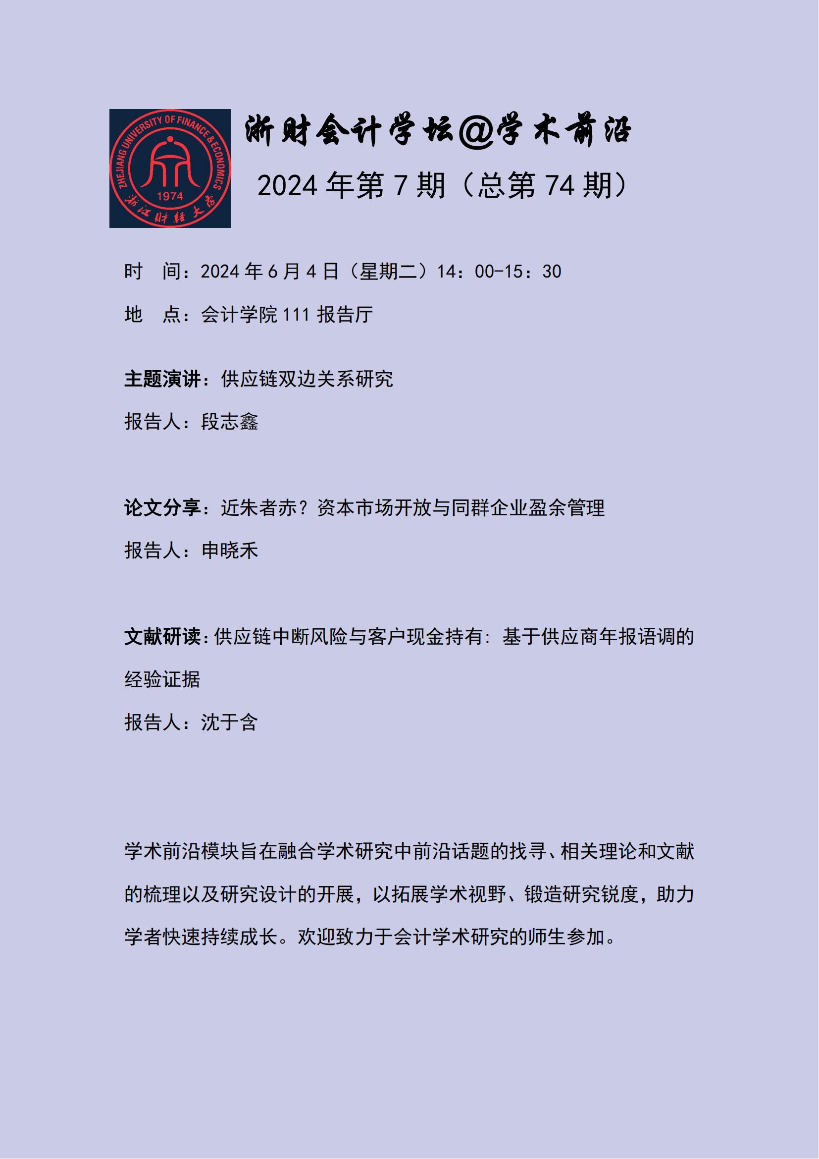 浙财会计学坛@学术前沿2024年第7期(总第74期)
