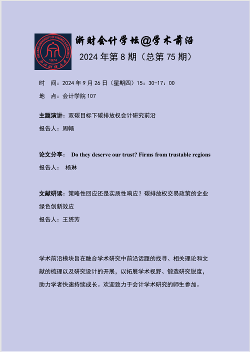 浙财会计学坛@学术前沿2024年第8期(总第75期)