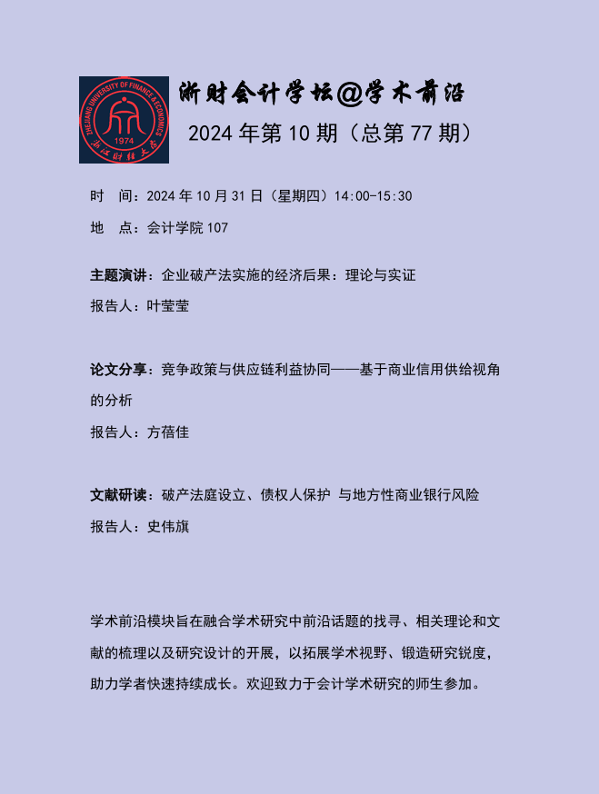 浙财会计学坛@学术前沿2024年第10期(总第77期)