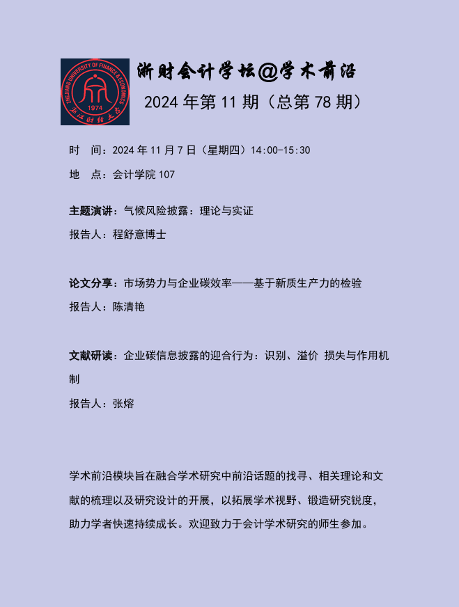 浙财会计学坛@学术前沿2024年第11期(总第78期)
