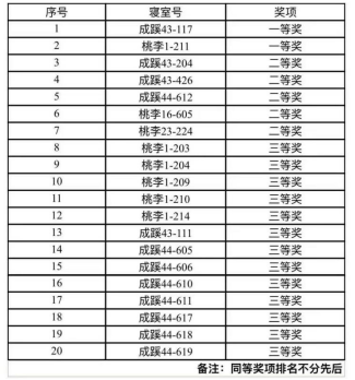 本次活动中,同学们热情高涨、踊跃参与,充分发挥创意巧思,将一间间宿舍蜕变为风格鲜明、独具魅力的个性化空间。有的宿舍洋溢着浓厚的学术气息,有的展现出文艺清新的美学格调,每一处精心设计都彰显出对美的多元诠释。在展示环节,寝室解说员们绘声绘色地讲述设计思路,生动呈现出丰富多彩的寝室文化。最后,经评审团从创意主题、空间利用、文化内涵、环保理念等多维度综合评定,最终评选出以下获奖寝室: