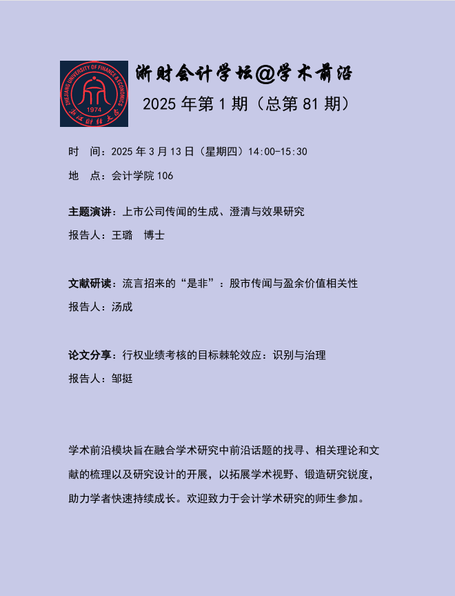 浙财会计学坛@学术前沿2025年第1期(总第81期)