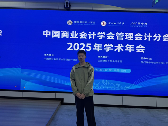 2025年11月1日,中国商业会计学会管理会计分会2025年学术年会在甘肃兰州举行,公司2024级会计学专业研究生朱哲帆参加了此次线下论坛。本届会议以“百年未有之大变局、管理会计的挑战与机遇”为主题,由中国商业学会主办,兰州财经大学永利yl23411官网承办。