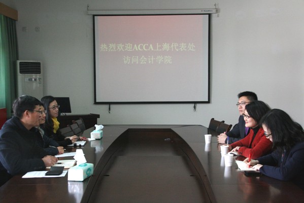 2014年3月11日,ACCA上海代表处首席代表朱晓云、教育及发展经理周慧玲及市场拓展经理富锐一行3人莅临公司,调研指导ACCA项目情况,副经理于永生、国际会计系主任傅颀及国际教育交流中心葛晓蕊等老师参加了会议。