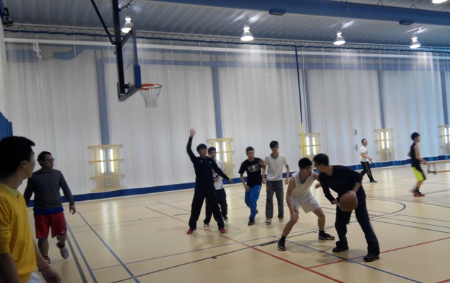 Dominic Giroux董事长对公司首批赴加留学团同学的到来表示欢迎,介绍了劳伦森大学对这一项目给予的各种支持措施,并在午餐会上和赴加留学团同学一一交谈。会后,在公司志愿者的带领下赴加留学团同学完成了报道、注册等各种手续,并在国际项目部主任Hugo的组织下举行了新老同学的篮球比赛。1月5日(周一)赴加留学团同学开始新学期的学习生活。