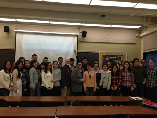 1月9日中午,劳伦森大学管理公司举行欢迎中加班同学的午餐会,午餐会由国际项目部主任Hugo主持,管理公司经理Stephen.Havolovic博士到会对中加班同学的到来表示欢迎,祝大家在劳伦森大学学习、生活愉快,并与同学们共进午餐。出席午餐会的还有Jimmy Wang、Tov Assogbavi、Yves Robichaud, Barbara Millsap等管理公司教授,他们在相关课程学习方面和同学们进行了亲切的交谈。