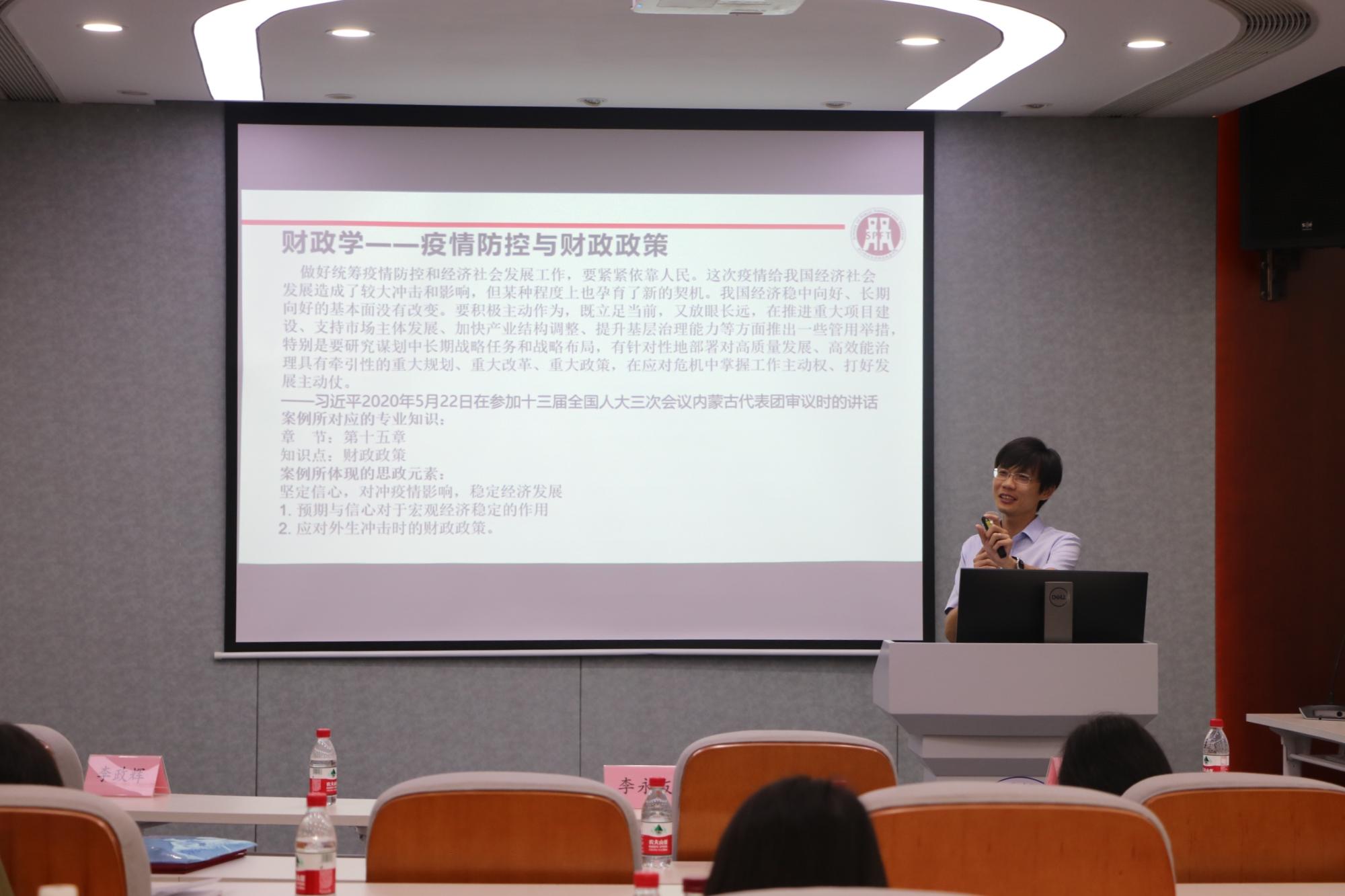 中心首席专家邵毅平教授以《推进课程思政的一些思考》为主题作了主旨报告。她提出了课程思政研究中心的愿景和工作目标,并对财会类专业课程思政元素的挖掘与融合、课程思政课堂教学的组织与开展、互联网手段载体的应用等给予了深入指导。财政税务公司副经理童光辉以《财政学专业课程思政建设——我们的思考、行动与展望》为主题作了经验交流。他基于国家级课程思政示范课程《财政学》,详细展示了“全方位、内嵌型、多样化、案例式”的课程思政建设方案与成果。永利yl23411官网傅黎瑛、赵宇恒、袁怡闻等三位老师分别结合所授课程作了课程思政现场教学示范与交流。